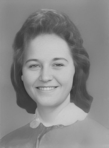 Carolyn Gibson. Carolyn died on August 13, 2018. This is her Freshman picture, the only school portrait available.