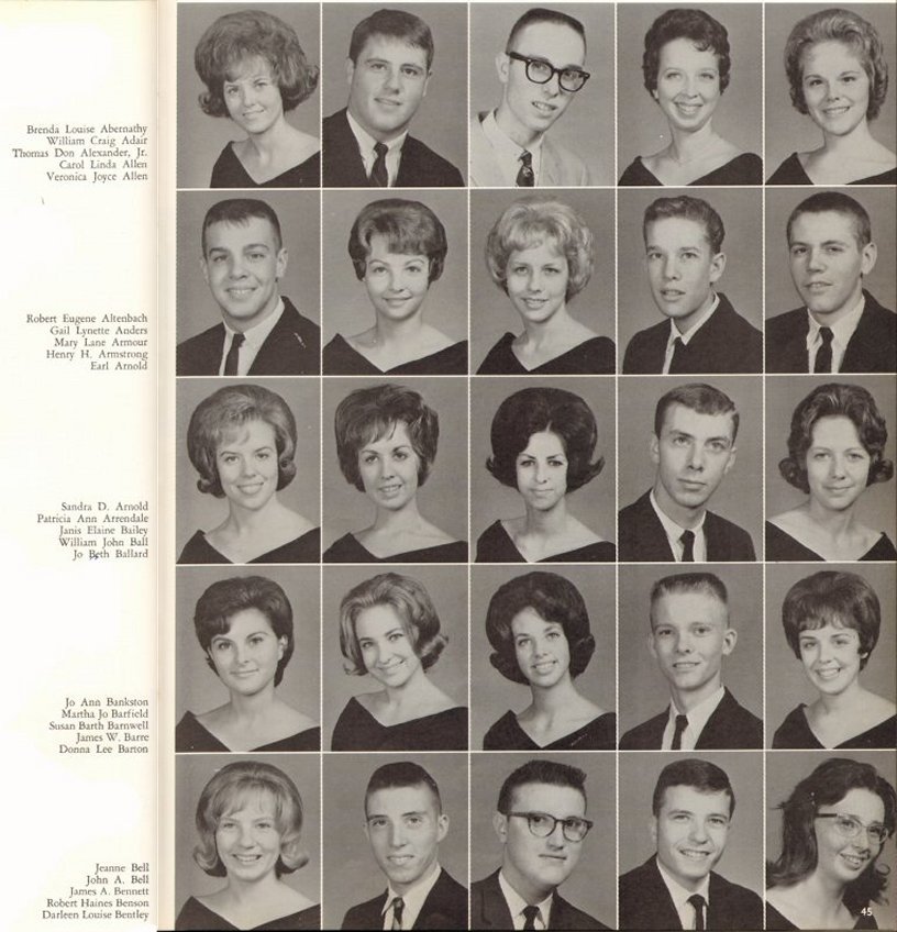 1964 Page 45. Note that part of the previous page has been added to make identification of the portraits possible. Go to