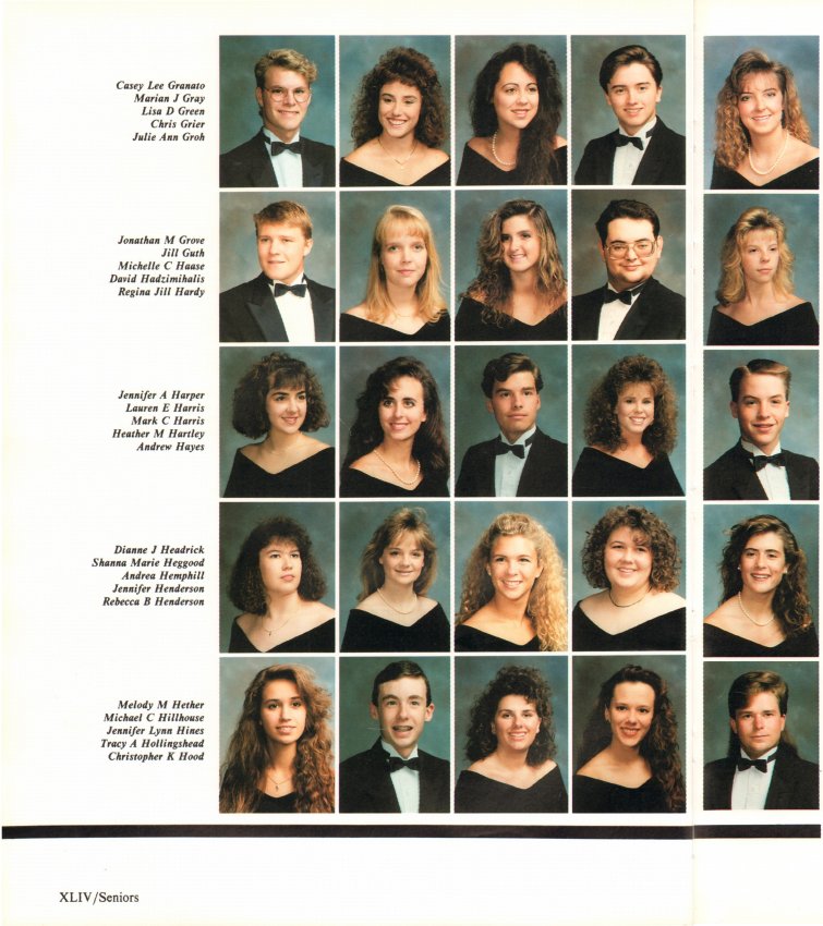 1991 Echo Page 44. Note that part of the following page has been added to make identification of the portraits possible. Go to