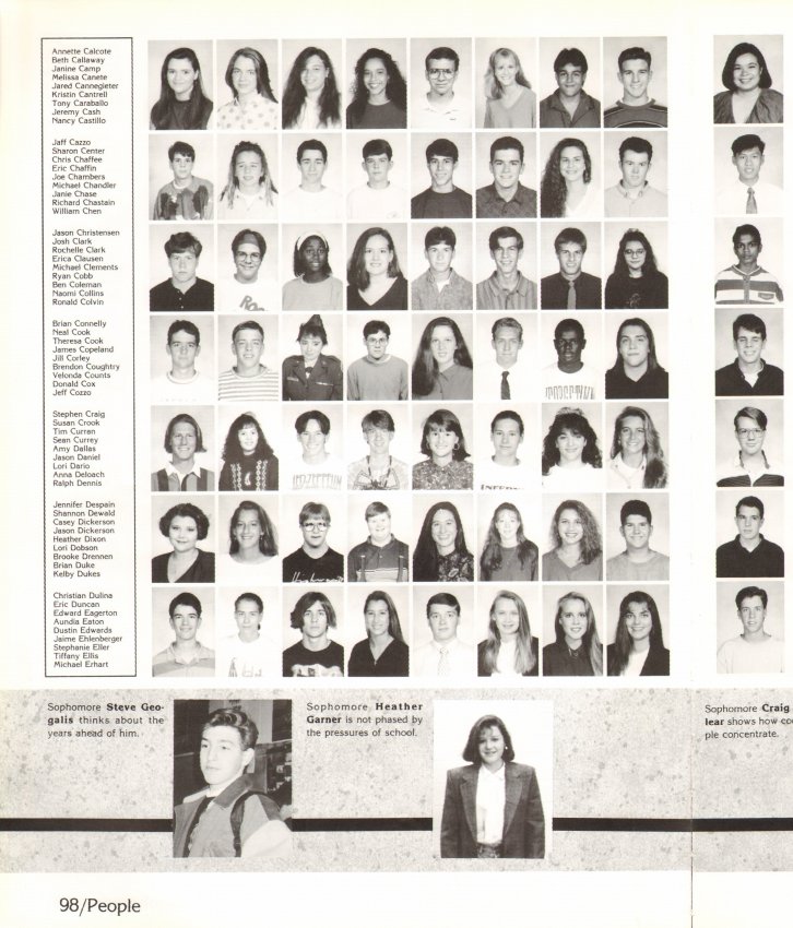 1992 Echo Page 98. Note that part of the following page has been added to make identification of the portraits possible. Go to