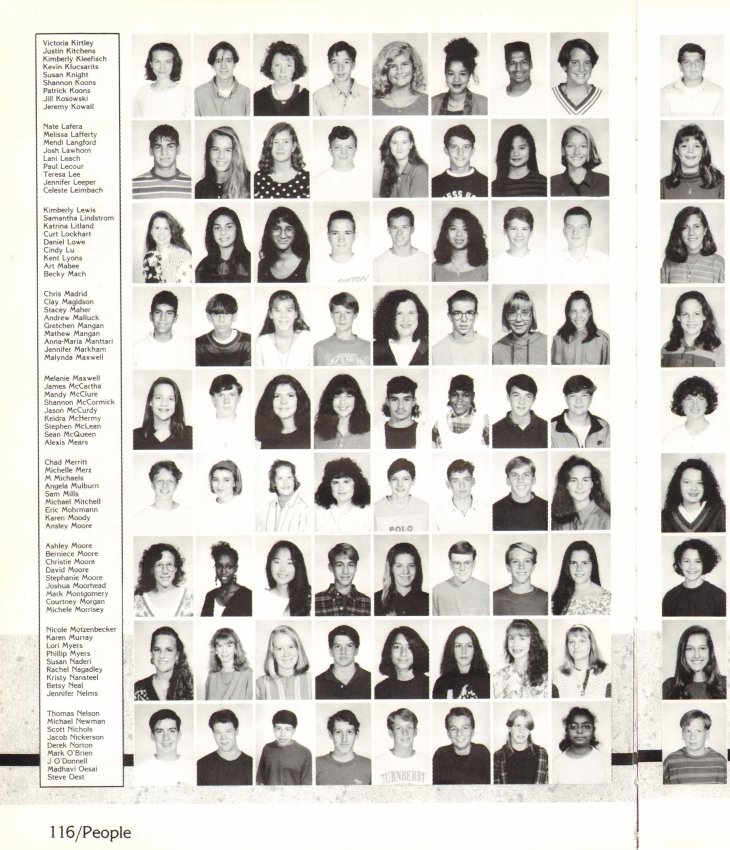 1992 Echo Page 116. Note that part of the following page has been added to make identification of the portraits possible. Go to